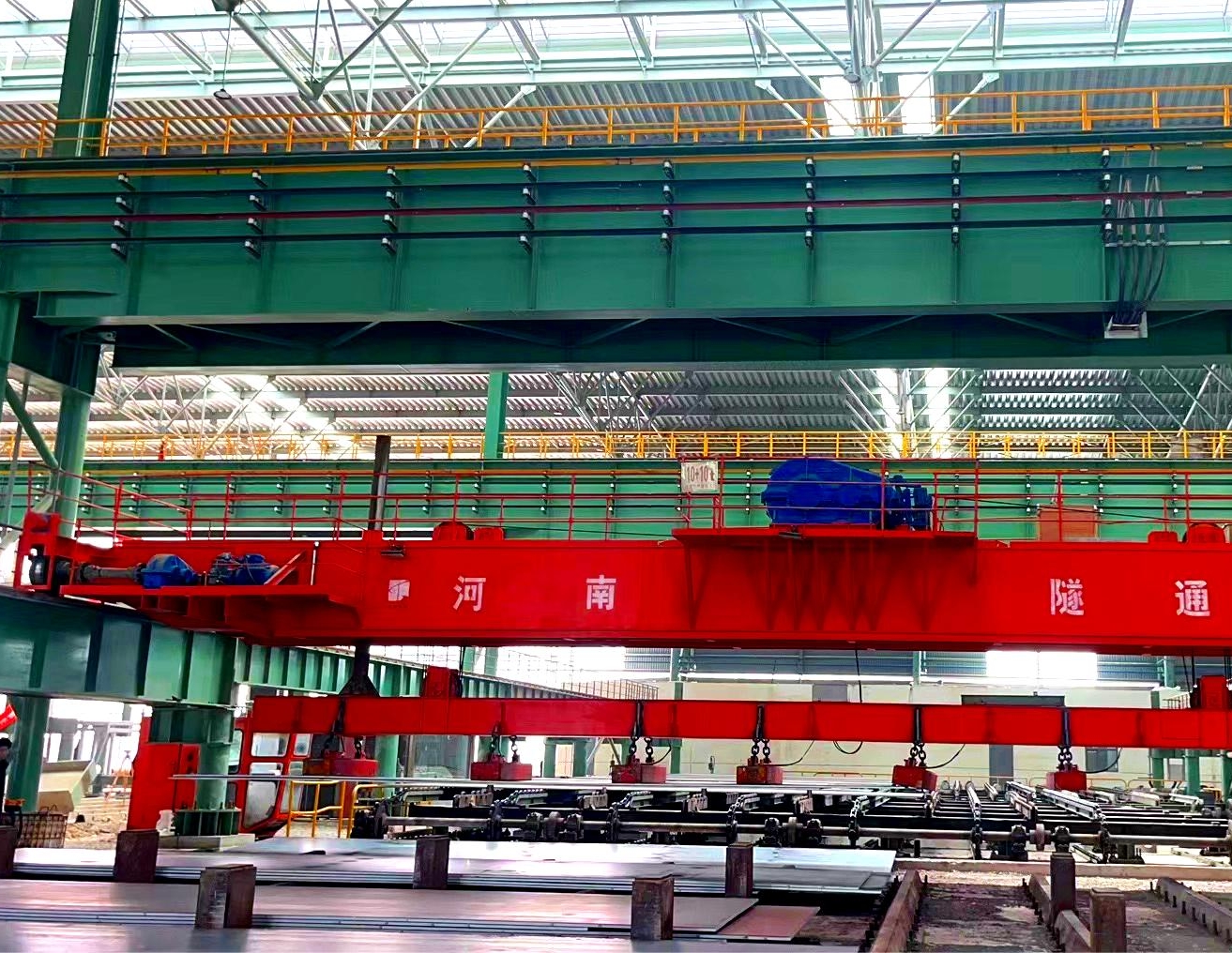 QE型通用橋式起重機(jī)依據(jù)GB/T14405-2011標(biāo)準(zhǔn)所設(shè)計(jì)、制造.該型號(hào)起重機(jī)是在QD型起重機(jī)基礎(chǔ)上設(shè)有兩臺(tái)起重小車(chē),其可以單獨(dú)工作,也可以聯(lián)臺(tái)動(dòng)作,適用于工礦企業(yè)車(chē)間及鐵路、港口碼頭等貨場(chǎng)吊運(yùn)長(zhǎng)件物品。